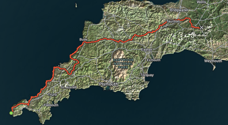 Where: 400km to cover. Traversing Cornwall, Devon, Somerset.